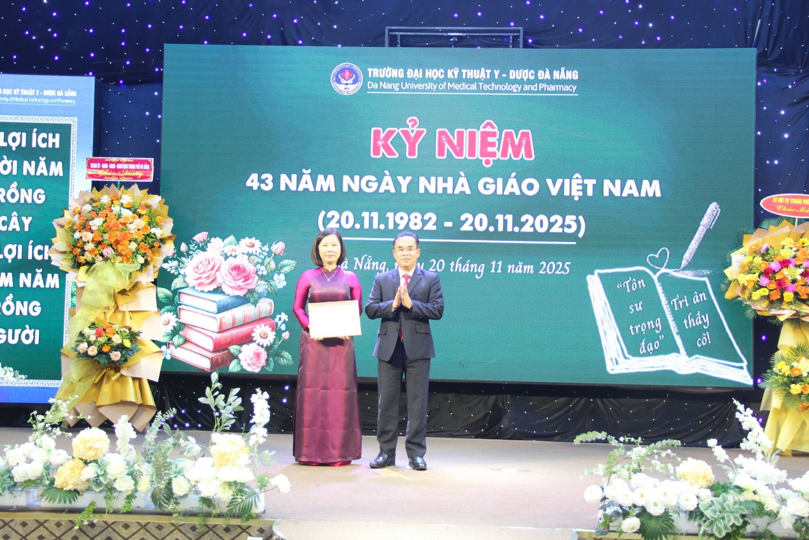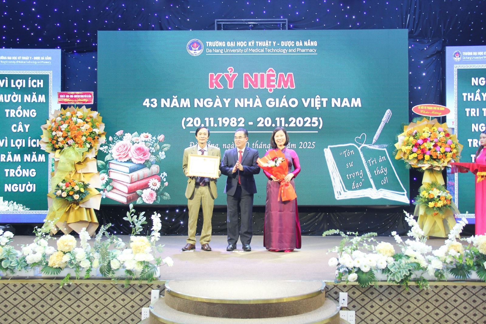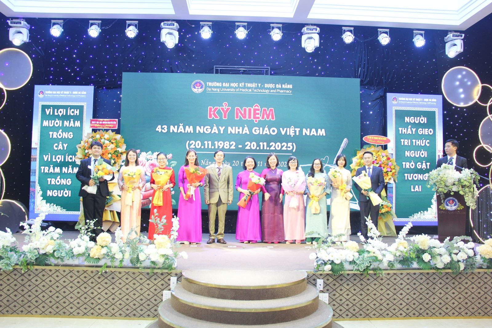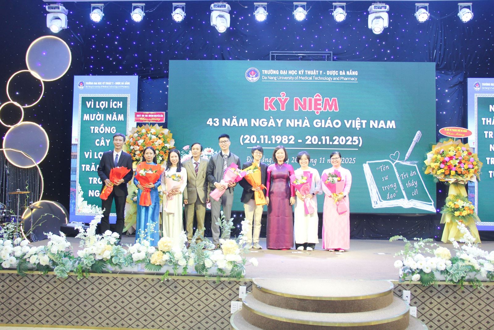 Chiều ngày 20/11, Trường Đại học Kỹ thuật Y - Dược Đà Nẵng tổ chức Lễ kỷ niệm 43 năm Ngày Nhà giáo Việt Nam (20/11/1982 - 20/11/2025) trong không khí trang trọng, ấm áp. Tham dự buổi lễ có đồng chí Trần Anh Tuấn - Thành ủy viên, Phó Chủ tịch UBND thành phố Đà Nẵng, cùng đại diện lãnh đạo các Sở, các bệnh viện, trung tâm y tế; lãnh đạo, nguyên lãnh đạo Nhà trường, cán bộ hưu trí, viên chức và sinh viên.