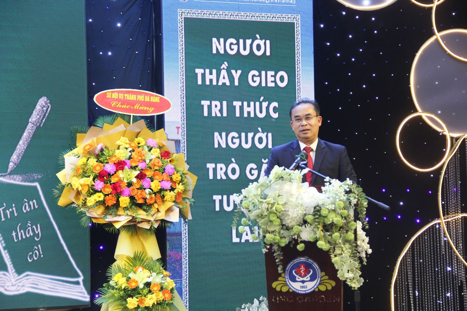 Phát biểu chúc mừng đội ngũ nhà giáo của Trường, đồng chí Trần Anh Tuấn Phó Chủ tịch UBND thành phố Đà Nẵng ghi nhận những nỗ lực của tập thể Nhà trường trong đào tạo nguồn nhân lực y tế chất lượng cao cho thành phố và khu vực; đồng thời bày tỏ sự trân trọng đối với những đóng góp lặng thầm nhưng vô cùng quan trọng của các thế hệ thầy cô.