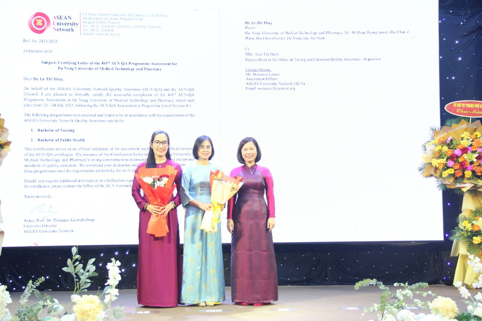 Nhân dịp này, Nhà trường tôn vinh những thành tựu nổi bật của các đơn vị trong năm 2025. Đáng chú ý, 02 chương trình đào tạo Điều dưỡng và Y tế công cộng vừa được AUN-QA công nhận đạt chuẩn kiểm định chất lượng, nâng cao vị thế và uy tín học thuật của Trường trong khu vực.