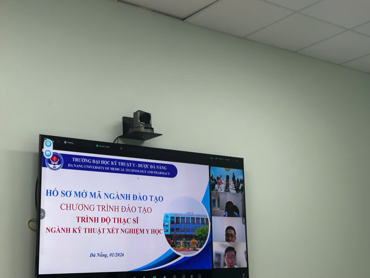 Thực hiện kế hoạch phát triển đào tạo sau đại học, vào lúc 15 giờ chiều ngày 26 tháng 01 năm 2026, Trường Đại học Kỹ thuật Y – Dược Đà Nẵng đã tổ chức cuộc họp thẩm định Hồ sơ mở mã ngành đào tạo trình độ Thạc sĩ ngành Kỹ thuật Xét nghiệm Y học theo hình thức trực tiếp kết hợp trực tuyến.