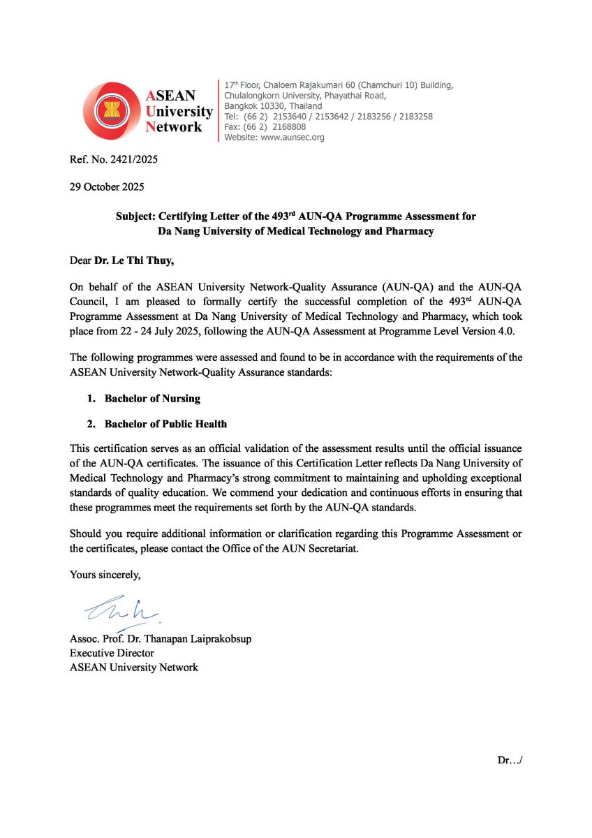 CHỨNG NHẬN KIỂM ĐỊNH CHẤT LƯỢNG GIÁO DỤC ĐÀO TÀO TỪ TỔ CHỨC AUN-QA