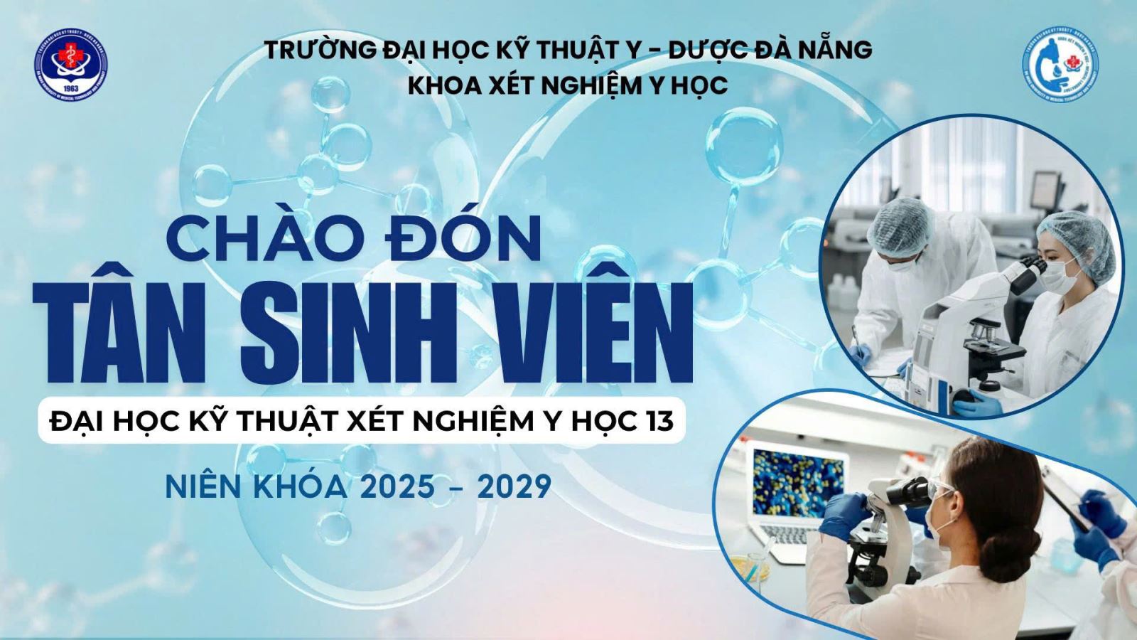 Đà Nẵng, tháng 9 năm 2025 – Trong không khí hân hoan của năm học mới, Khoa Xét nghiệm Y học – Trường Đại học Kỹ thuật Y - Dược Đà Nẵng long trọng chào đón các tân sinh viên Khóa 13 – những gương mặt ưu tú đã xuất sắc vượt qua kỳ thi tuyển sinh đầy thử thách để chính thức trở thành một phần của đại gia đình Khoa Xét nghiệm Y học.