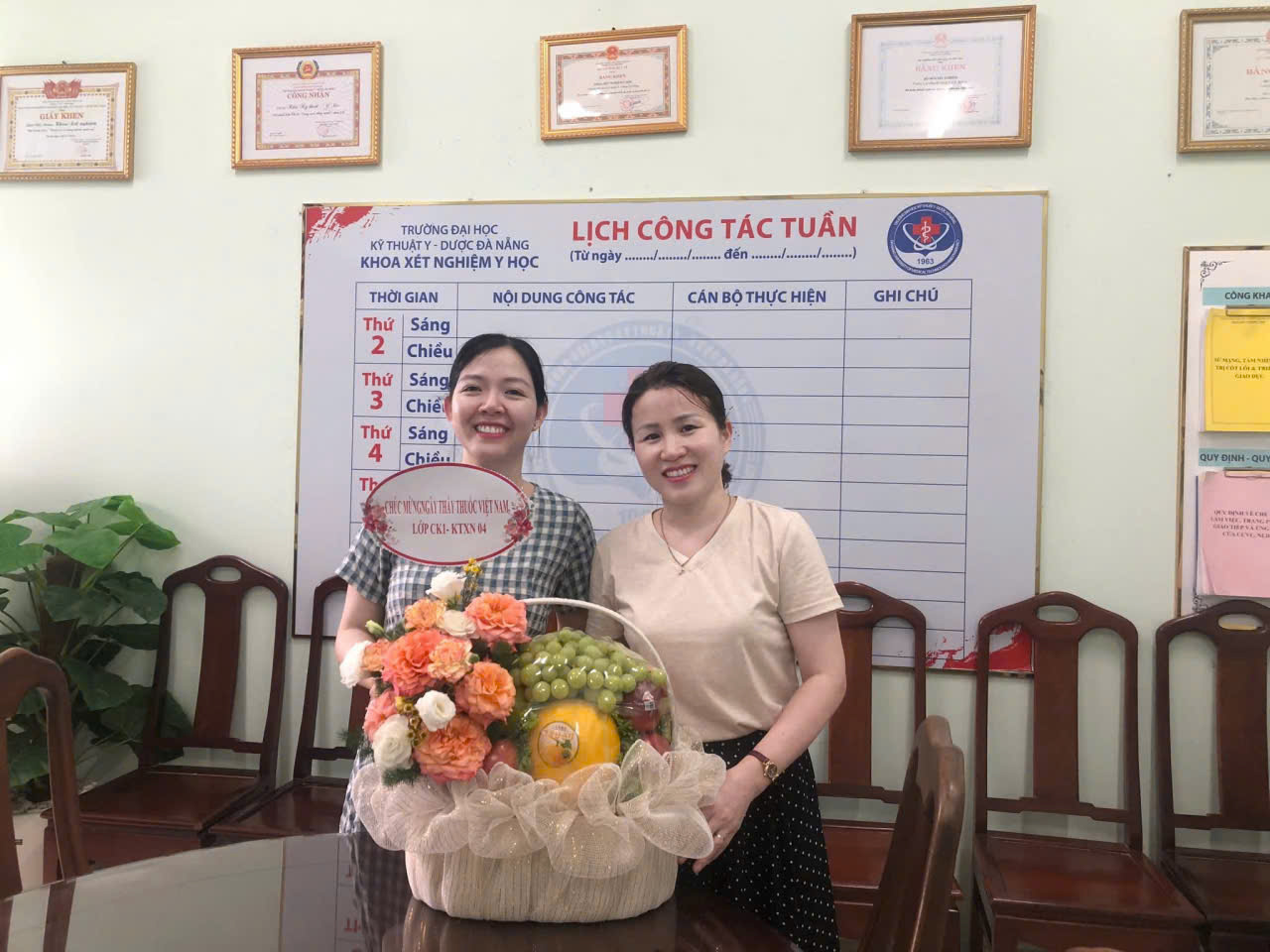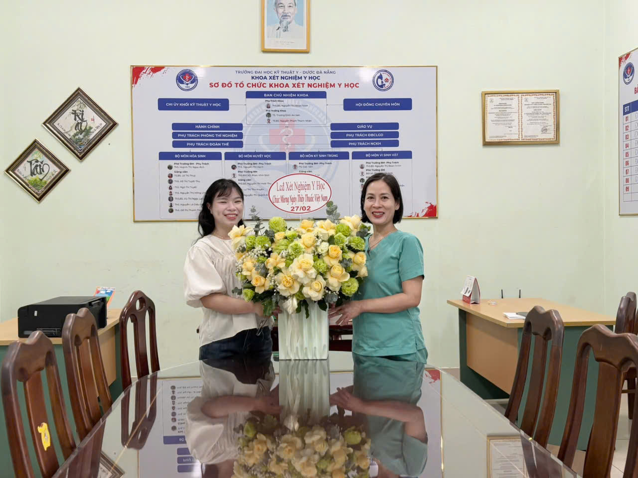 Thay mặt tập thể học viên và sinh viên chuyên ngành Xét nghiệm, đại diện đoàn đã gửi lời chúc mừng tốt đẹp nhất 💖 đến quý thầy cô và anh/chị; kính chúc toàn thể giảng viên, cán bộ và nhân viên Khoa luôn mạnh khỏe, hạnh phúc 🌿, giữ vững nhiệt huyết với nghề và tiếp tục đạt nhiều thành công trong sự nghiệp đào tạo và chăm sóc sức khỏe nhân dân.