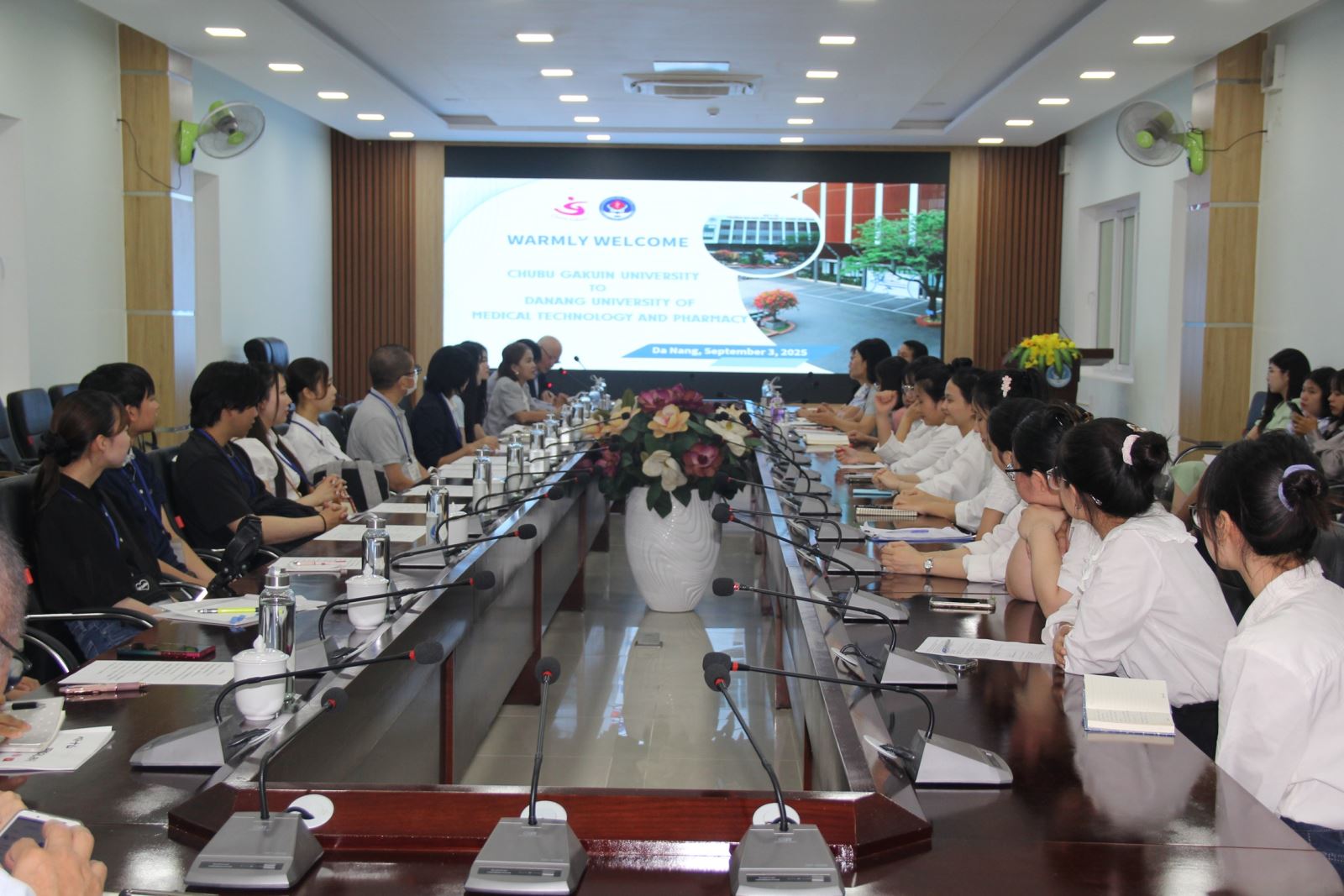 On the morning of September 3, 2025, the Da Nang University of Medical Technology and Pharmacy welcomed a delegation of faculty and students from Chubu Gakuin University (Japan) for an academic and cultural exchange program with nursing students. The activity aimed to promote professional collaboration, deepen mutual understanding, and expand international cooperation between the two institutions.