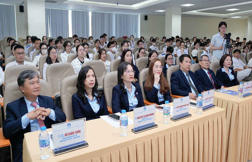 Attending the ceremony, on behalf of the University were Assoc. Prof. Dr. Le Thi Thuy – Rector; Dr. Dang Van Thoi – Vice Rector; Dr. Nguyen Minh Son – Vice Rector; along with leaders of functional departments, lecturers, and 141 final-year medical students. Representing Hue Central Hospital were Prof. Dr. Pham Nhu Hiep – Director; Specialist Level II Dr. Pham Nhu Vinh Tuyen – Deputy Director; Dr. Ho Van Linh – Deputy Director; together with heads of centers, departments, and administrative units.