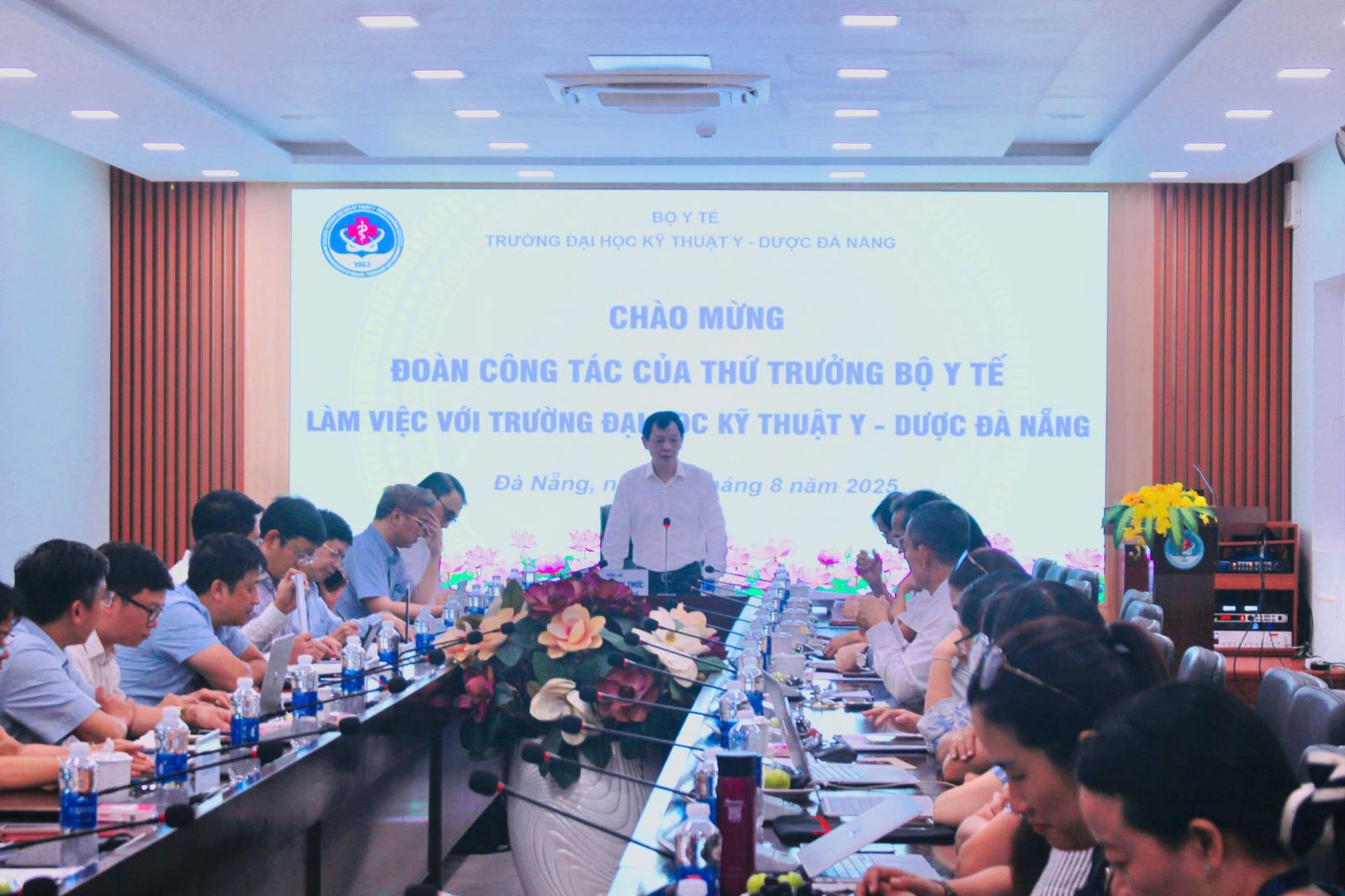 On the afternoon of August 22, Da Nang University of Medical Technology and Pharmacy welcomed a delegation from the Ministry of Health led by Assoc. Prof. Dr. Nguyen Tri Thuc, Deputy Minister of Health, for an official visit and working session.