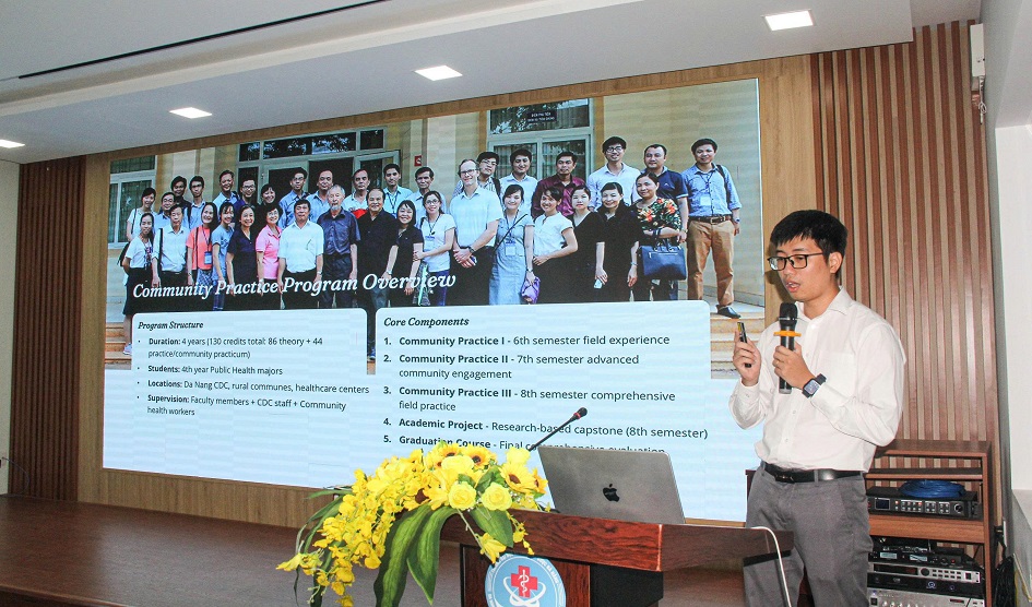 Representing DUMTP were Dr. Nguyen Minh Son, Vice Rector; Dr. Cao Bich Thuy, Head of the Office of Science–Technology Management and International Cooperation; together with leaders of the Faculties of Medicine, Nursing, Rehabilitation, and Public Health.