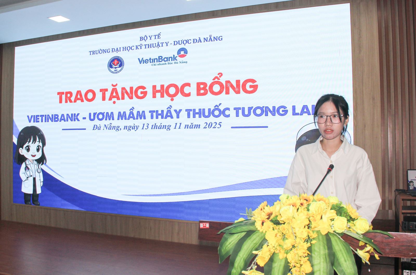 Chiều ngày 13/11/2025, Trường Đại học Kỹ thuật Y - Dược Đà Nẵng phối hợp với Ngân hàng VietinBank - Chi nhánh Bắc Đà Nẵng tổ chức lễ trao học bổng “Vietinbank - Ươm mầm thầy thuốc tương lai” dành cho sinh viên có hoàn cảnh khó khăn nhưng nỗ lực đạt thành tích tốt trong học tập và rèn luyện.