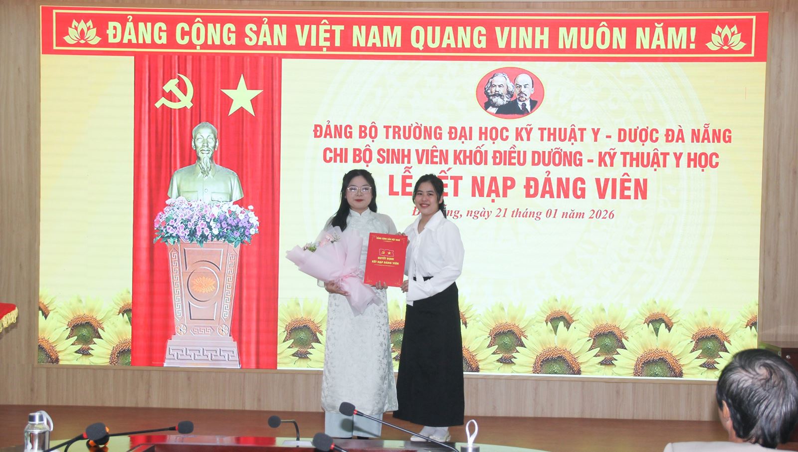 Nhân dịp chào mừng Đại hội đại biểu toàn quốc lần thứ XIV của Đảng và kỷ niệm 96 năm Ngày thành lập Đảng Cộng sản Việt Nam (03/02/1930 - 03/02/2026), chiều ngày 21/01/2026, các chi bộ sinh viên gồm: Y khoa, Dược học, Khối Điều dưỡng và Kỹ thuật Y học thuộc Đảng bộ Trường Đại học Kỹ thuật Y - Dược Đà Nẵng đã long trọng tổ chức Lễ kết nạp cho 11 quần chúng ưu tú đứng vào hàng ngũ của Đảng Cộng sản Việt Nam.