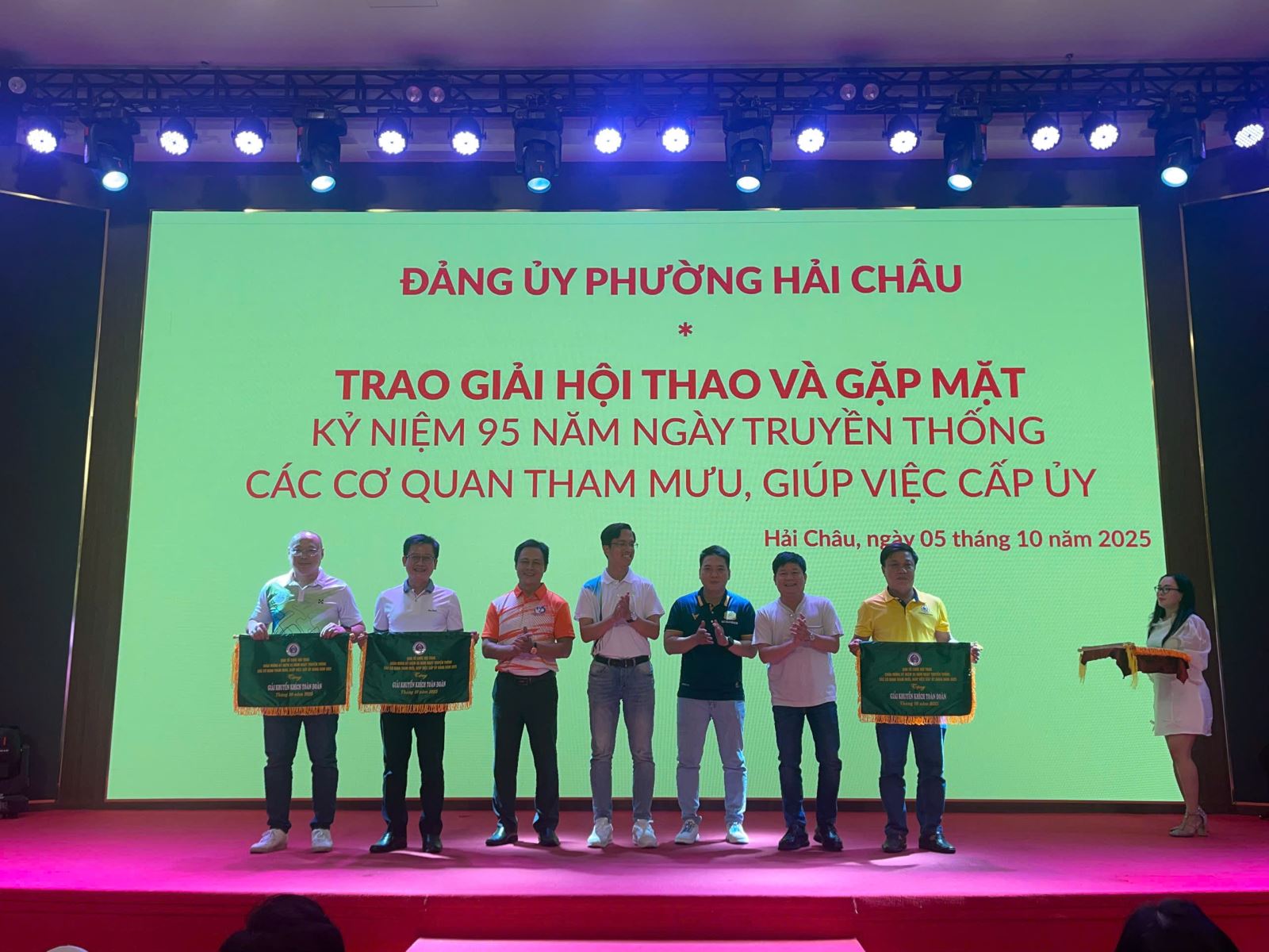 Chiều ngày 05/10/2025, Đảng ủy phường Hải Châu tổ chức Lễ tổng kết và trao giải Hội thao chào mừng kỷ niệm 95 năm Ngày truyền thống các Cơ quan tham mưu, giúp việc cấp ủy (1930 - 2025). Hội thao diễn ra trong không khí sôi nổi, đoàn kết, là dịp để tăng cường giao lưu, gắn bó giữa các cơ quan, đơn vị, trường học và tổ chức chính trị - xã hội trên địa bàn phường.