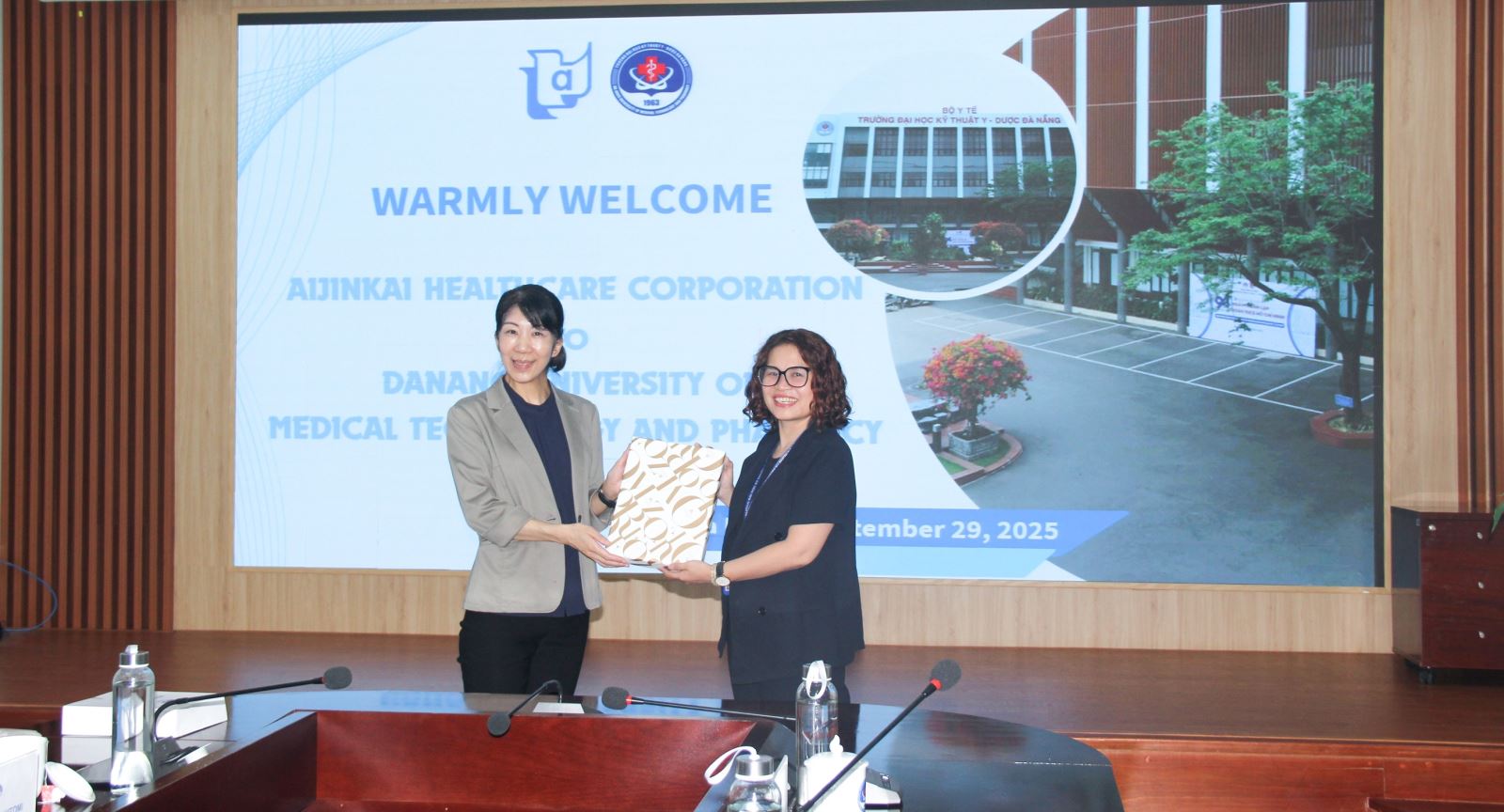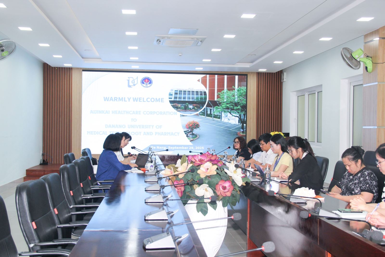 Chiều ngày 29/9, Trường Đại học Kỹ thuật Y - Dược Đà Nẵng đã có buổi tiếp và làm việc với đoàn Tập đoàn y tế xã hội Aijinkai (Nhật Bản). Về phía đoàn Aijinkai gồm: bà Sadasue Hitomi - Quản lý bộ phận Phục hồi chức năng; bà Hamaguchi Yui - Kỹ thuật viên Vật lý trị liệu. Tiếp và làm việc với đoàn về phía Trường Đại học Kỹ thuật Y - Dược Đà Nẵng, có ThS.BS Cao Bích Thủy - Phó Trưởng phòng phụ trách Phòng Quản lý Khoa học Công nghệ và Hợp tác quốc tế; ThS Phạm Minh Tân - Phó Trưởng Khoa Phục hồi chức năng cùng các giảng viên của Khoa Phục hồi chức năng.