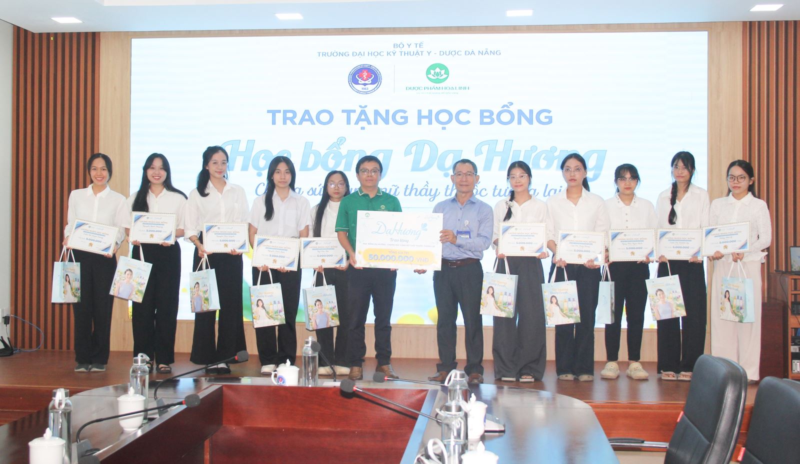 Chiều ngày 13/11/2025, Trường Đại học Kỹ thuật Y - Dược Đà Nẵng phối hợp với Công ty Cổ phần Dược phẩm Hoa Linh tổ chức lễ trao học bổng “Dạ Hương - chung sức cùng nữ thầy thuốc tương lai” cho 10 nữ sinh viên ngành Y khoa và Dược học có thành tích học tập xuất sắc, rèn luyện tốt và có hoàn cảnh khó khăn.