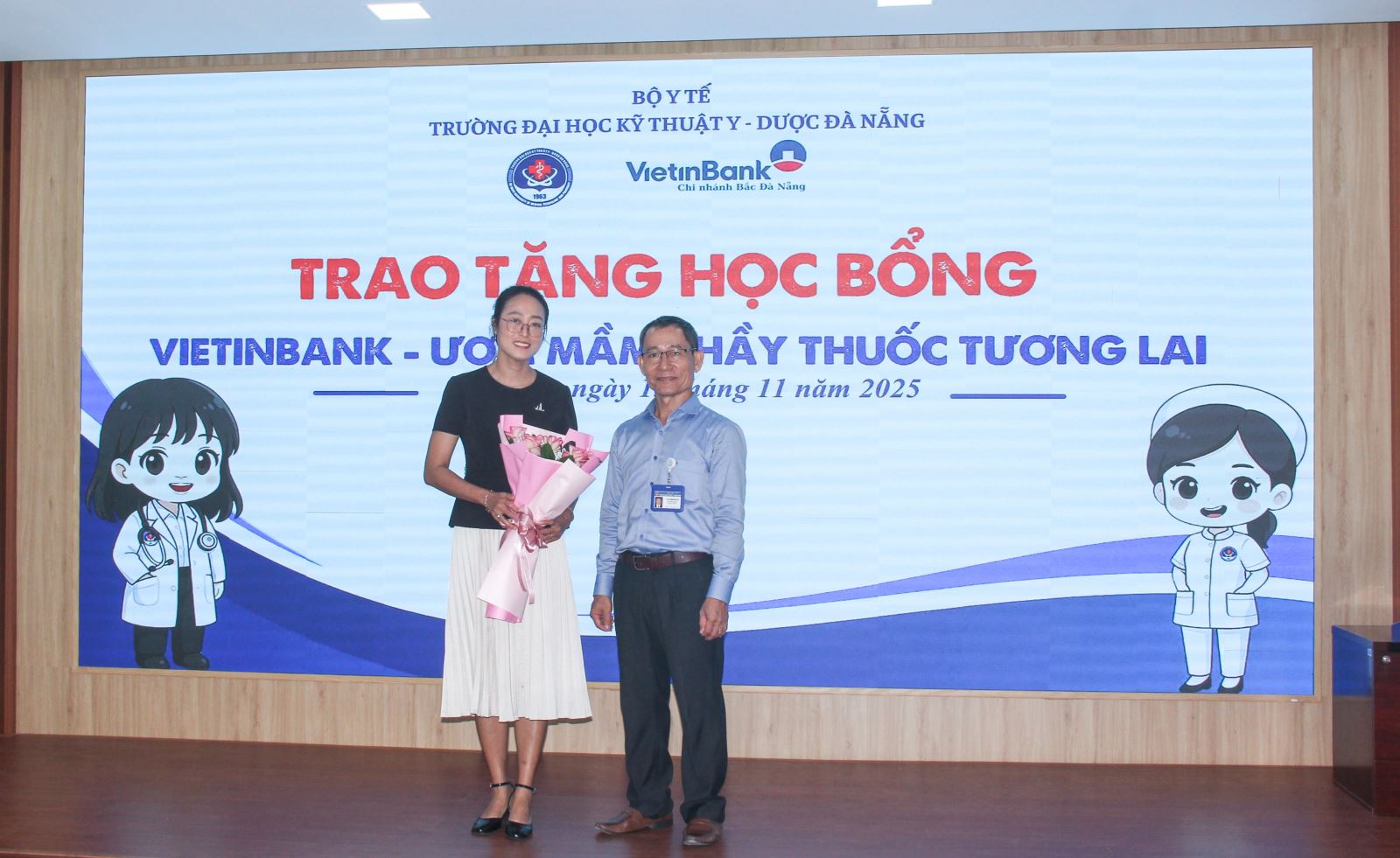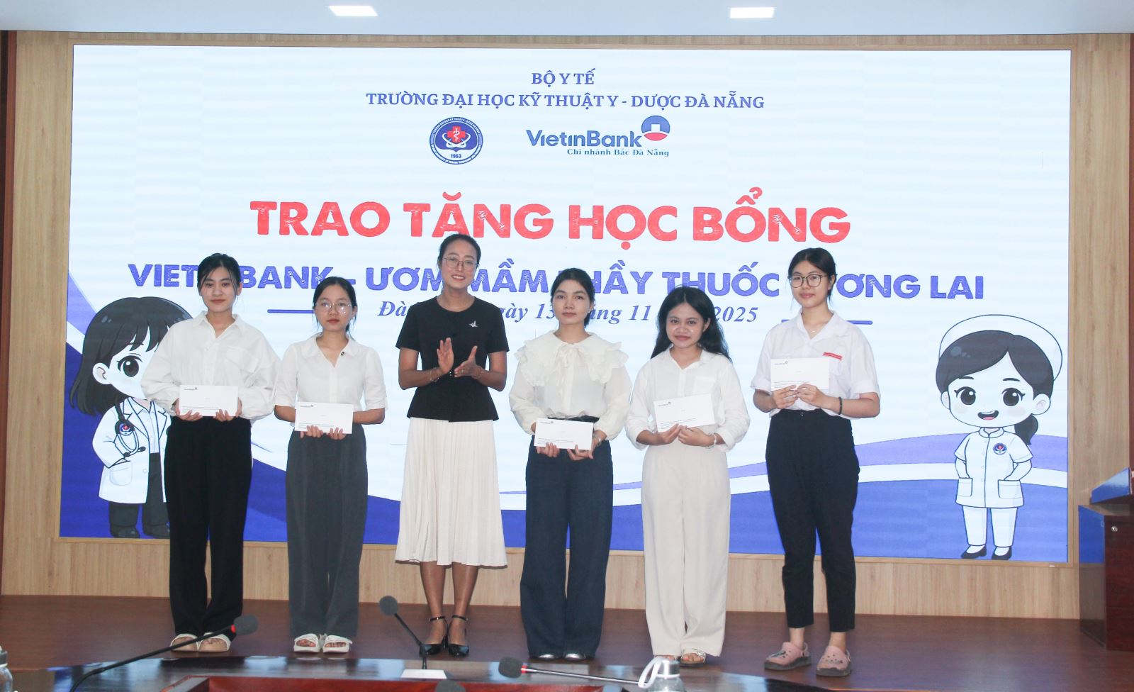 Chiều ngày 13/11/2025, Trường Đại học Kỹ thuật Y - Dược Đà Nẵng phối hợp với Ngân hàng VietinBank - Chi nhánh Bắc Đà Nẵng tổ chức lễ trao học bổng “Vietinbank - Ươm mầm thầy thuốc tương lai” dành cho sinh viên có hoàn cảnh khó khăn nhưng nỗ lực đạt thành tích tốt trong học tập và rèn luyện.