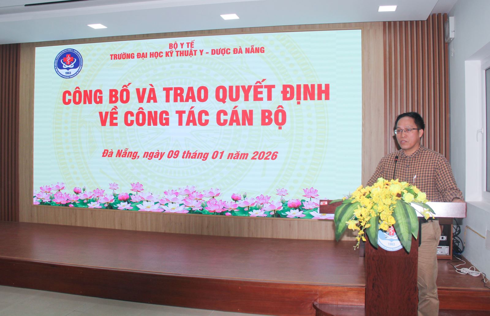 Sáng ngày 09/01/2026, Trường Đại học Kỹ thuật Y - Dược Đà Nẵng đã tổ chức Hội nghị công bố Quyết định về công tác cán bộ đối với viên chức giữ chức vụ quản lý của Nhà trường.
